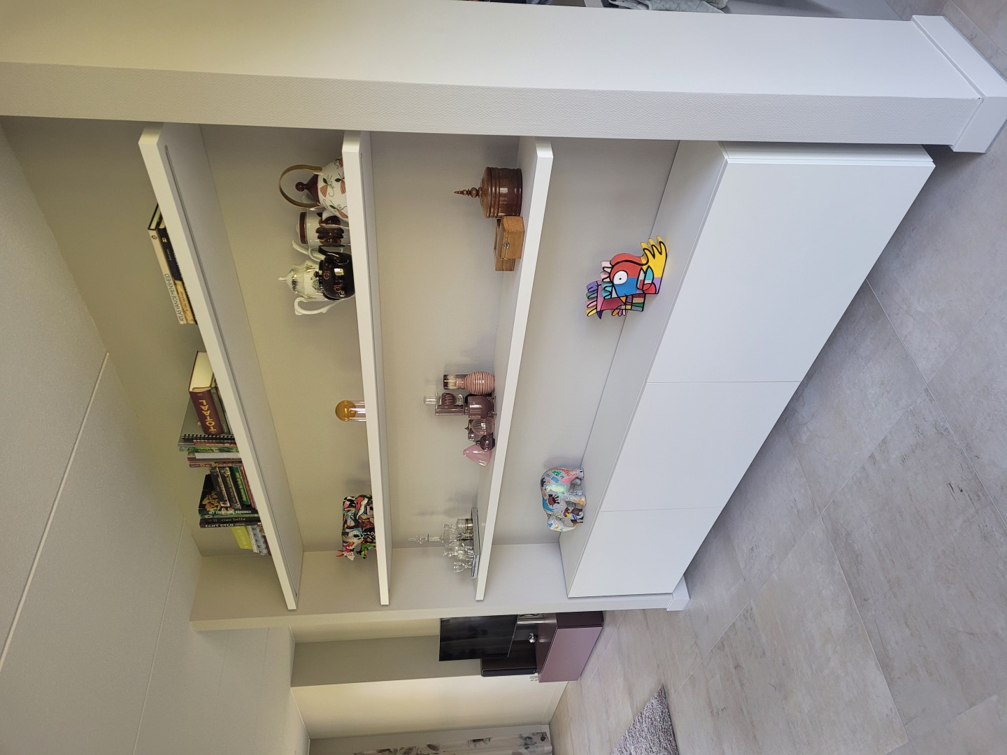 Boekenplanken en vormen als onderdeel van het geheel