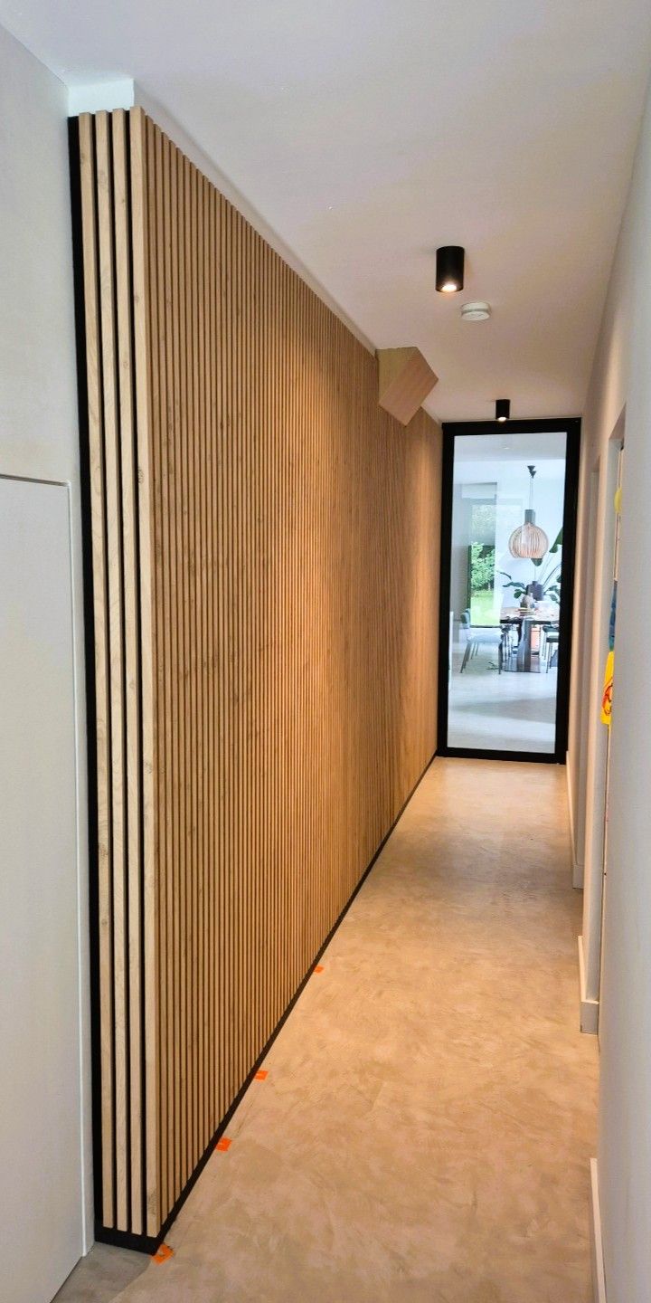 We werken graag met hout en andere eerlijke materialen om wanden tot leven te brengen. Denk aan verticale latten, 3D-panelen of ingetogen texturen die de ruimte structuur geven. Elk ontwerp is uniek – afgestemd op jouw smaak, jouw woning, jouw ritme.
